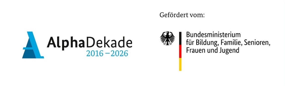 Dieses Produkt wurde im Rahmen der Nationalen Dekade für Alphabetisierung und Grundbildung 2016-2026 mit Mitteln des Bundesministeriums für Bildung, Familie, Senioren, Frauen und Jugend unter dem Förderkennzeichen W-1505A-AOG gefördert. Die Verantwortung für den Inhalt dieser Veröffentlichung liegt bei der Autorin/beim Autor.